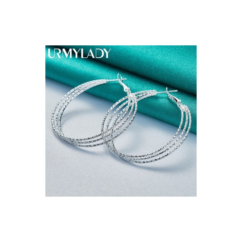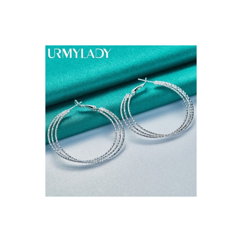 URMYLADY 925 Sterling Silver Threaded Round Earrings Ear Loops for Women Fashion Wedding Engagement Charm Jewelry