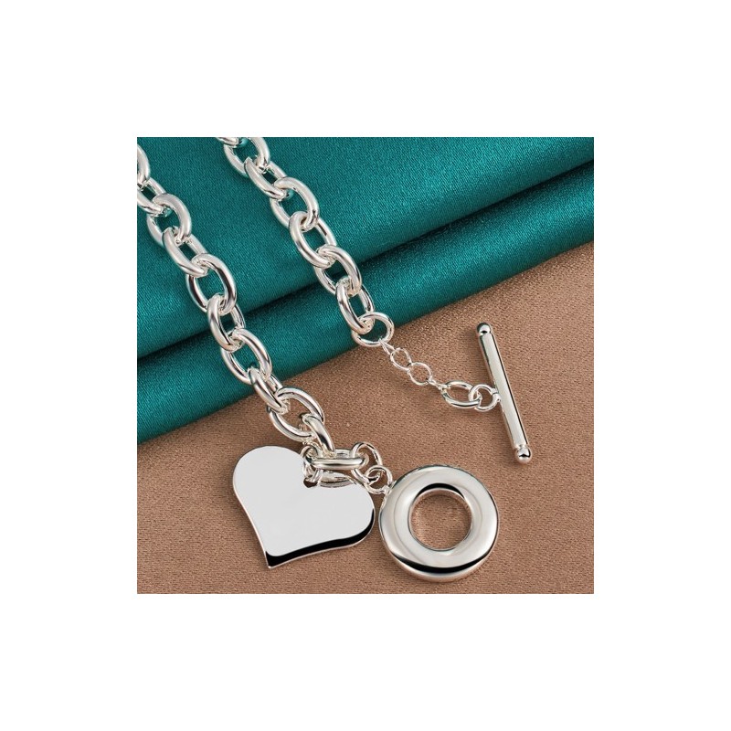 URMYLADY 925 Sterling Silver Love Heart Pendant Bracelet Necklace For Women Wedding Party Fashion Charm Jewelry Sets