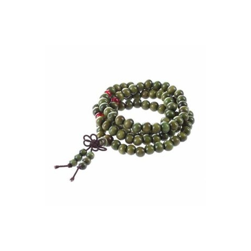 20X( * Olive Green Sandalwood Beads Buddha Buddhist Mala Stretch Necklace Rosary 29" * Designed with 108 round sandalwood beads (approximately 7.5mm diameter each) threaded on the elastic band, plus 3 smaller red partition beads in between, for the total length around 29 inches. * Delicate knotted tassel attached to the Guru beads, attached with two sets of 3 prayer counting beads (total 6 counting beads). * 108 is an important number in Buddhism because one must overcome 108 evils to reach enlightenment. * Tibetan Buddhist Prayer Beads Mala is also known as the Buddhist Rosary, as a tool for repetition of a mantra during meditation. * Prayer beads are used to count mantras, as your fingers pass over one prayer bead for each time you recite the man...